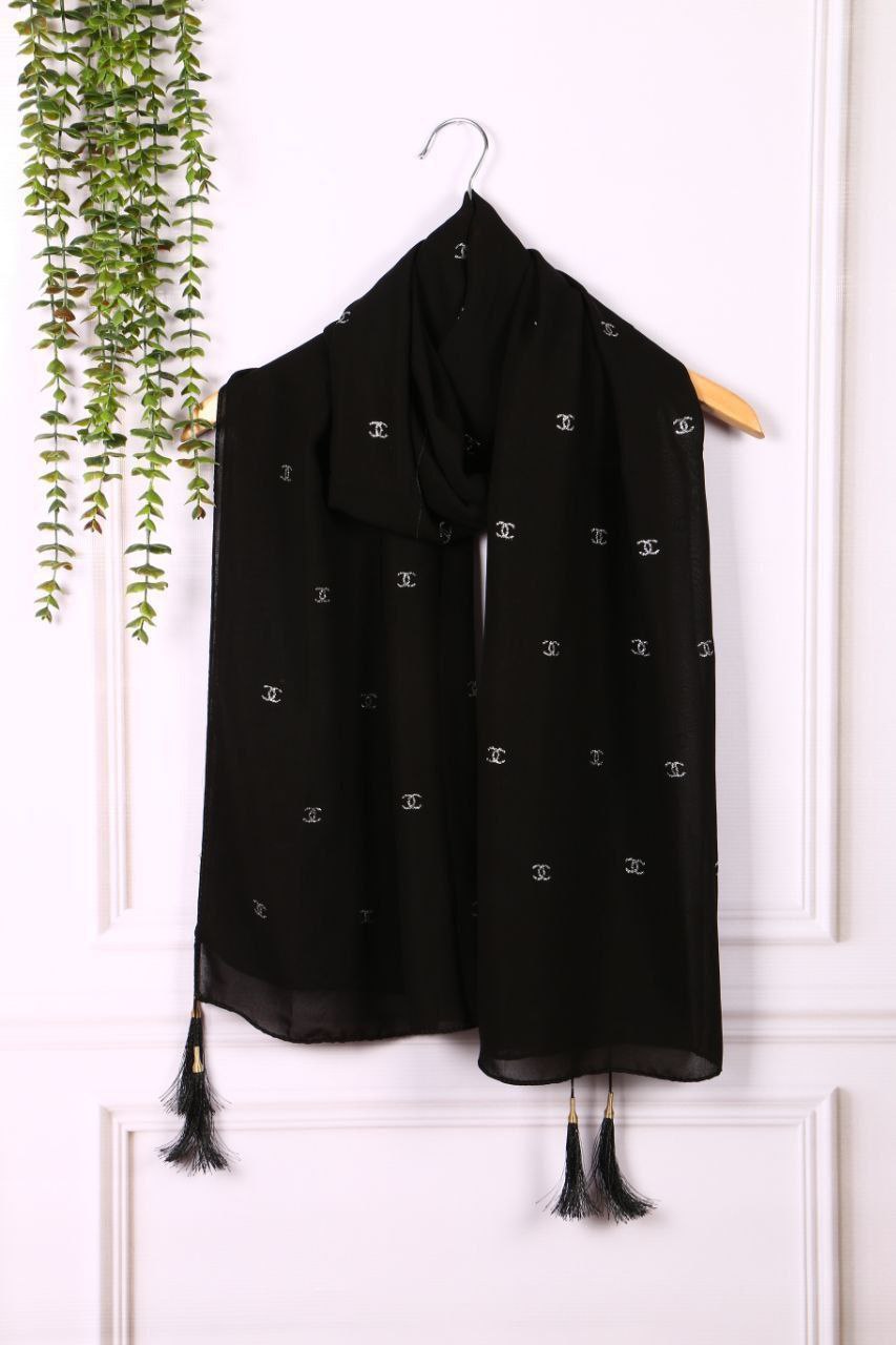 شالی لوکس و چشمنواز از جنس حریر سبک با طرح الهامگرفته از برند Chanel که استایل شما را خاص و متمایز میکند.