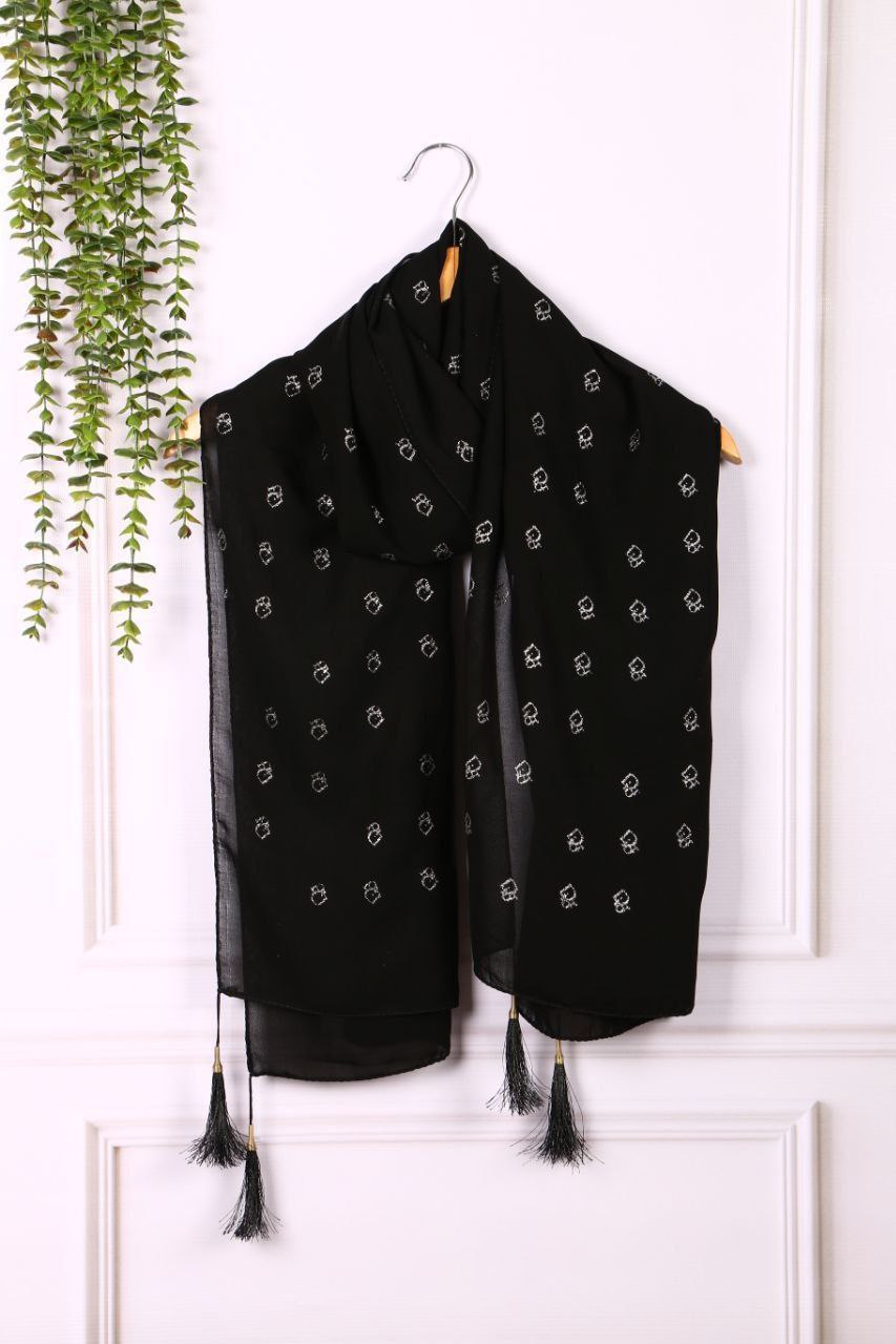 شالی ظریف و لاکچری از جنس حریر سبک با طرح الهام‌گرفته از برند Dior که جلوه‌ای خاص و چشمگیر به استایل شما می‌بخشد.