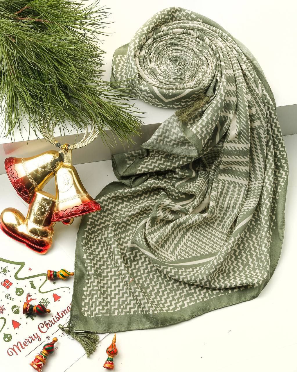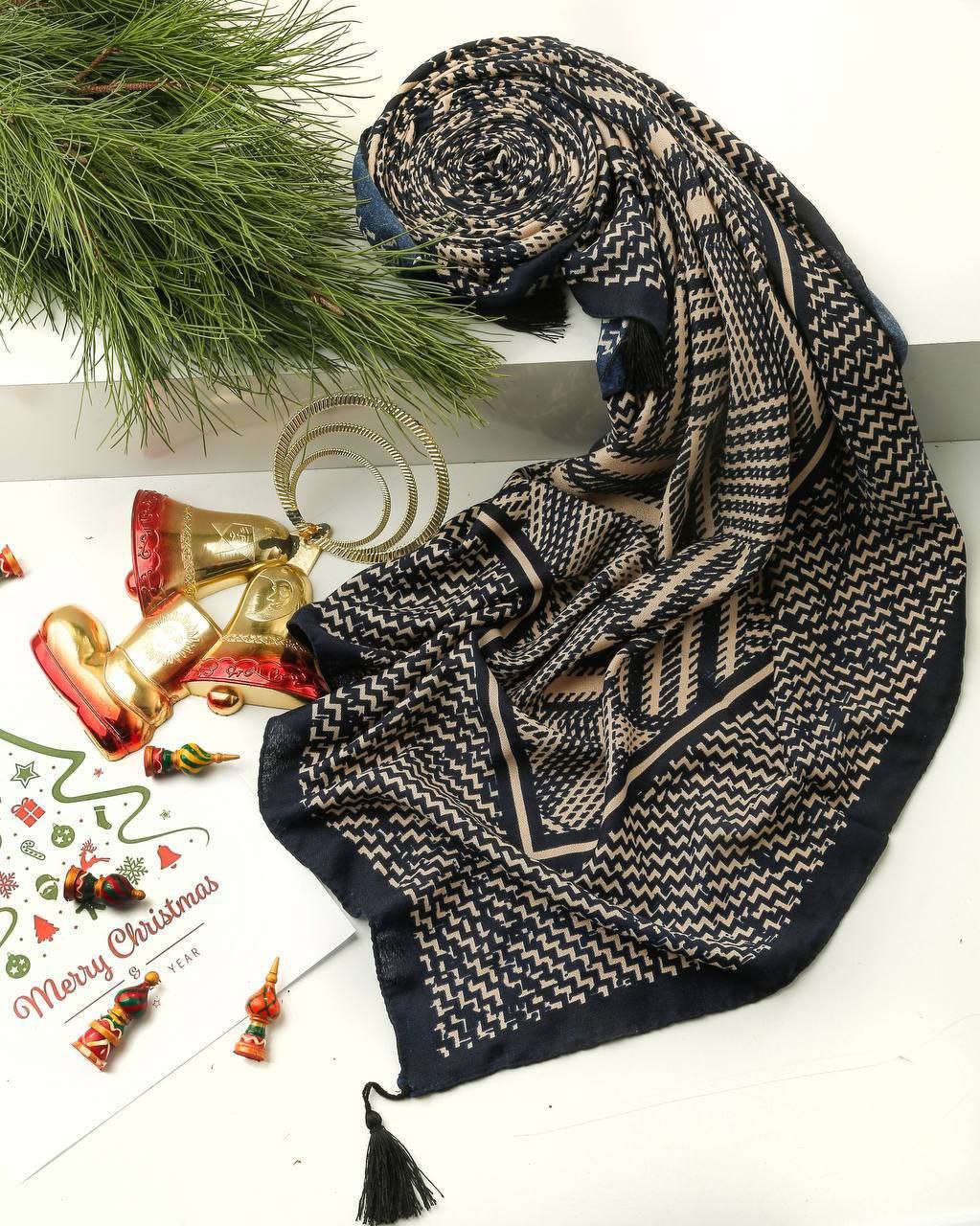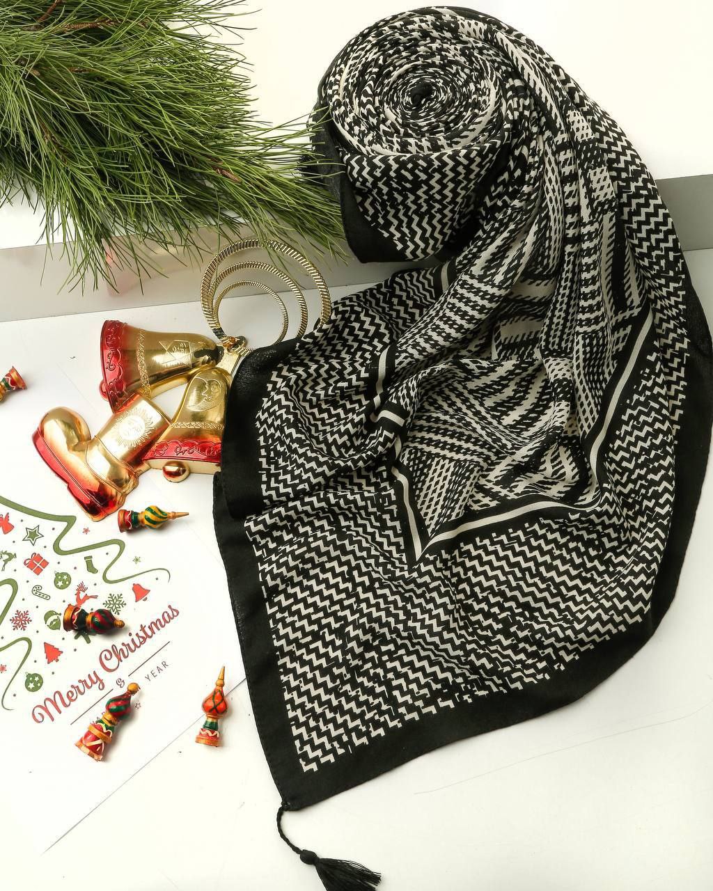کد محصول:197✨ روسری نخی سیا اسکارف منگوله دار ✨